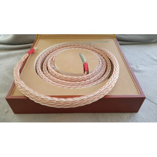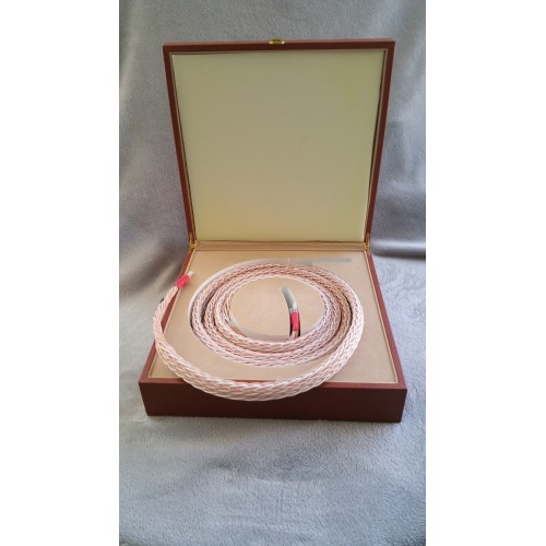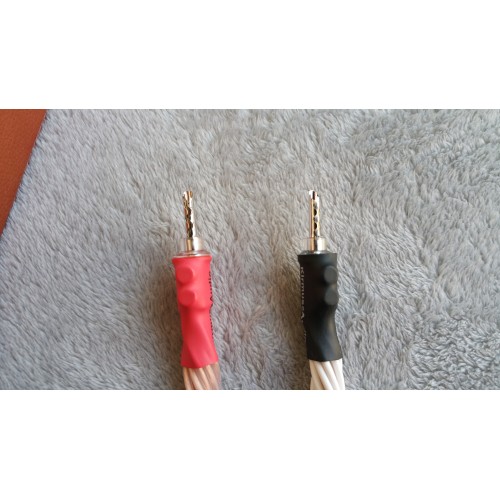 Specification | Our Design: 7AWG Per Conductor: Made up of 24 Cores of 72 cond. 24 ga/16AWG, 112/0.12BS*24C ID 2.6,OFC LDPE Cable, terminated with Rhodium Plated Cinch Banana Plugs. OUR SPECS: 9.2 milli-ohms/12'; Inductance: 0.6 micro-henry/12'; 1,538 pF / 12', 15,000 Hz. |